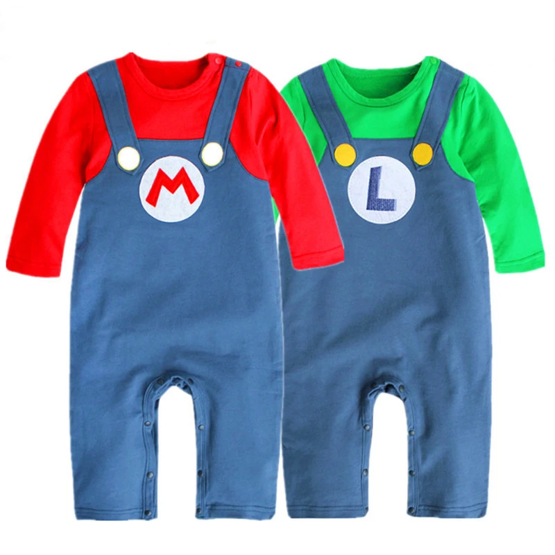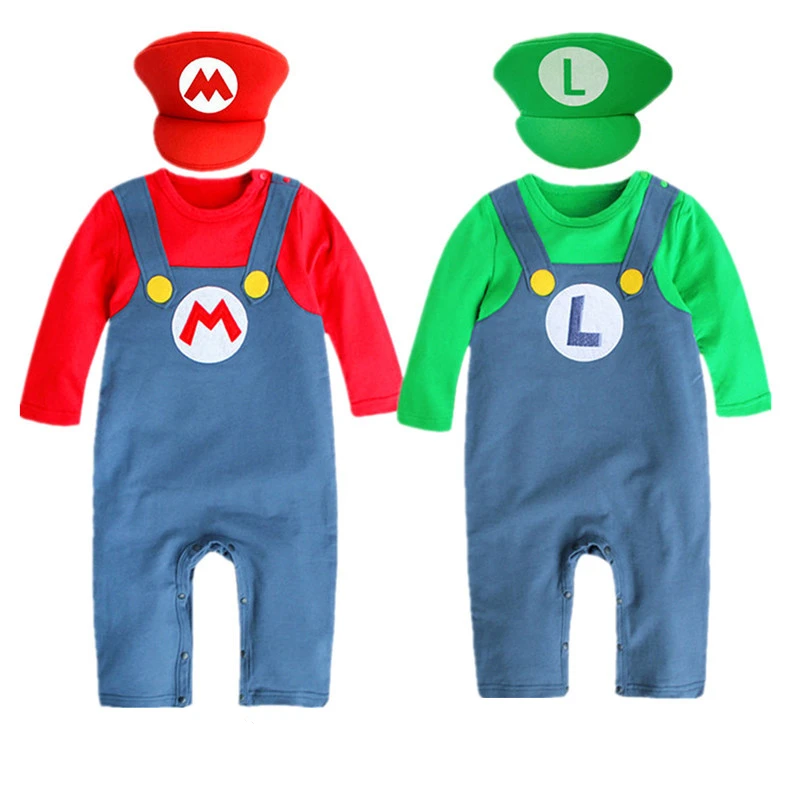 Super Marios Bros Newborn Baby Clothes with Hat Set Luigi  Long Sleeved Suit Baby Rompers Toddlers Costume Onesie Kids Pyjamsas
